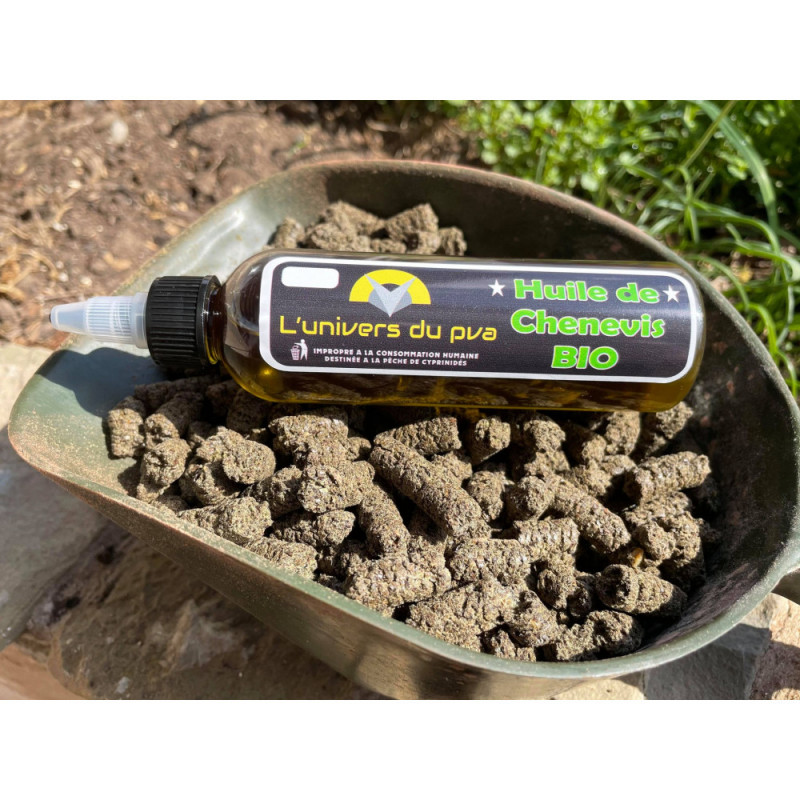 Huile de chènevis certifiée bio disponible de bidon de 1 litre, flacon de 250ml ou 120ml